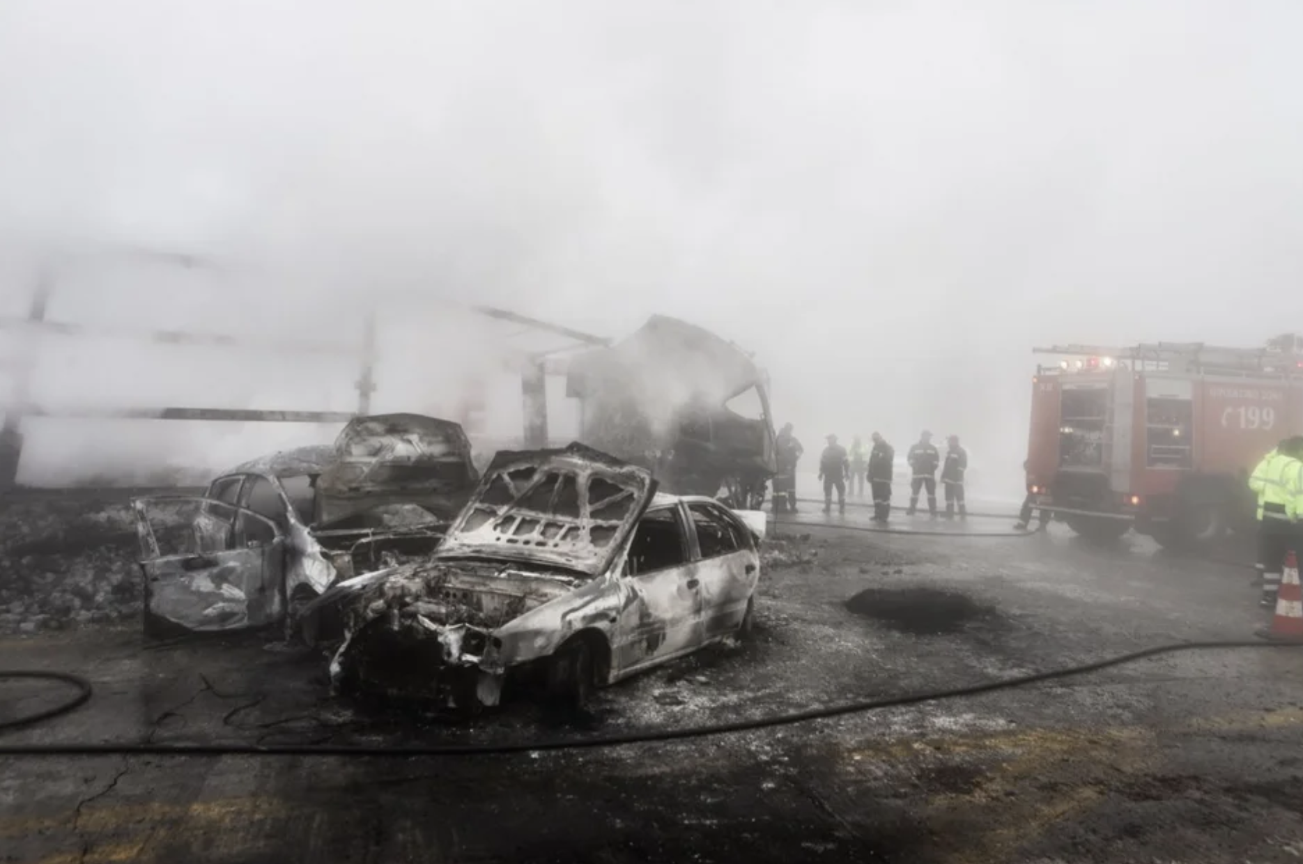 По време на инцидента в района е имало гъста мъглата и може да е допринесла за трагедията. След удара е избухнал пожар в колите и пункта за плащане на такси. Двама души от единия автомобил са овъглени до смърт.