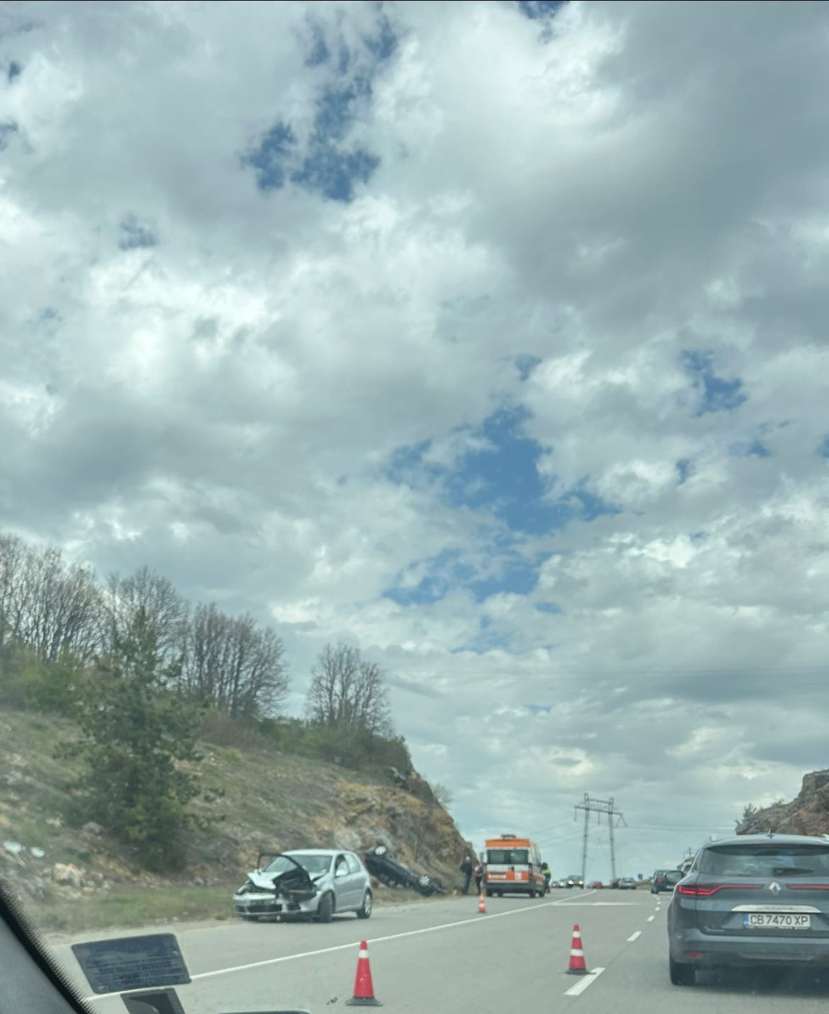 Тежка катастрофа затруднява движението в прохода Петрохан около Дреново, посока Монтана. От кадри в социалните мрежи става ясно, че един от автомобилите се е преобърнал по таван, на място има и линейка.