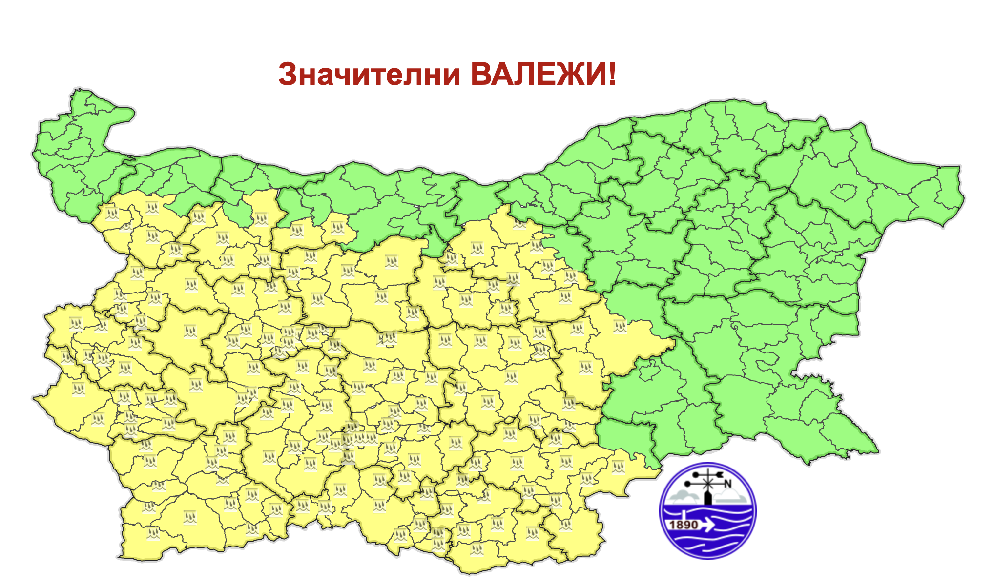 Днес ще бъде облачно. В Западна и Централна България дъжд ще вали през целия ден. През втората половина на деня дъжд ще завали и в източните райони. В Западна България вятърът ще се ориентира от запад-северозапад и ще е до умерен. С него ще прониква относително студен въздух. В Източна България ще продължи да духа умерен вятър от юг-югоизток. Максималните температури ще бъдат от 12°-15° в западната част на страната до 20° в източната, за София – около 12°.