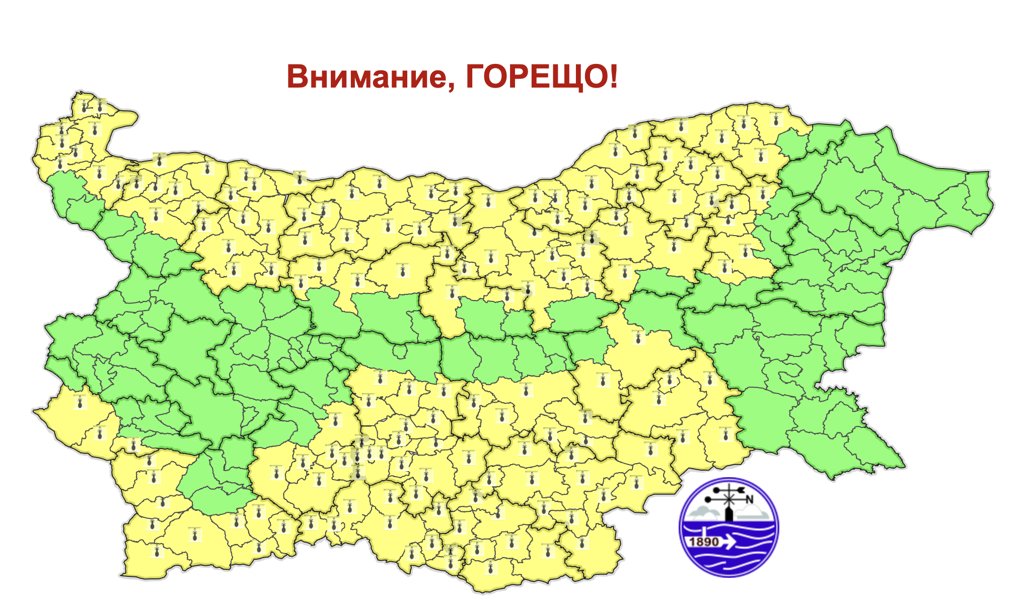 Сутринта над страната ще е ясно и почти тихо. През деня ще бъде слънчево. Ще духа слаб вятър от запад-северозапад. След обяд в много равнинни райони ще е горещо. Максималните температури ще бъдат между 32° и 37°, за София – около 32°.