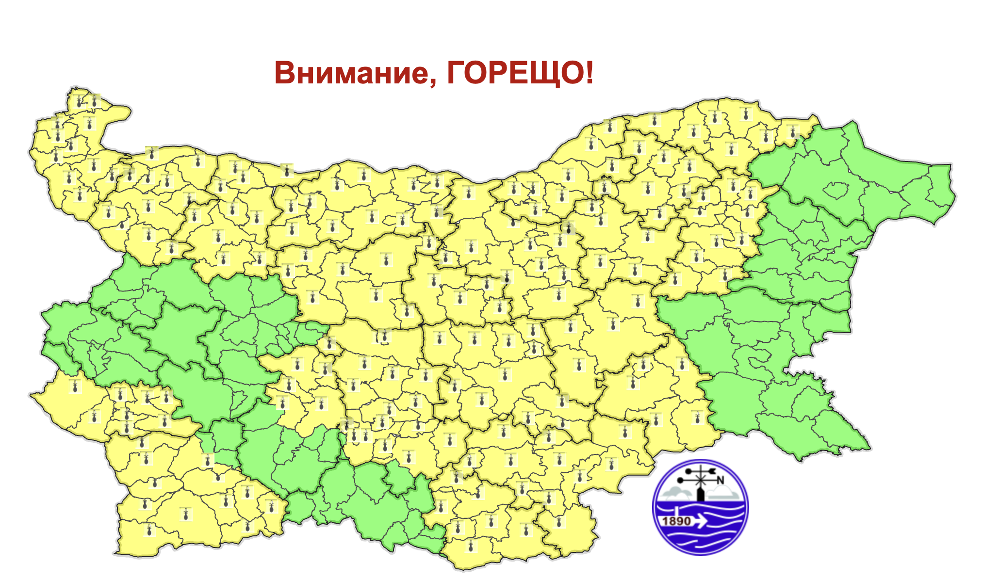 Днес ще бъде слънчево. Ще духа слаб до умерен, в югоизточните райони и временно силен източен вятър. Температурите още малко ще се повишат и максималните ще бъдат между 34° и 39°, в София – около 34°.
