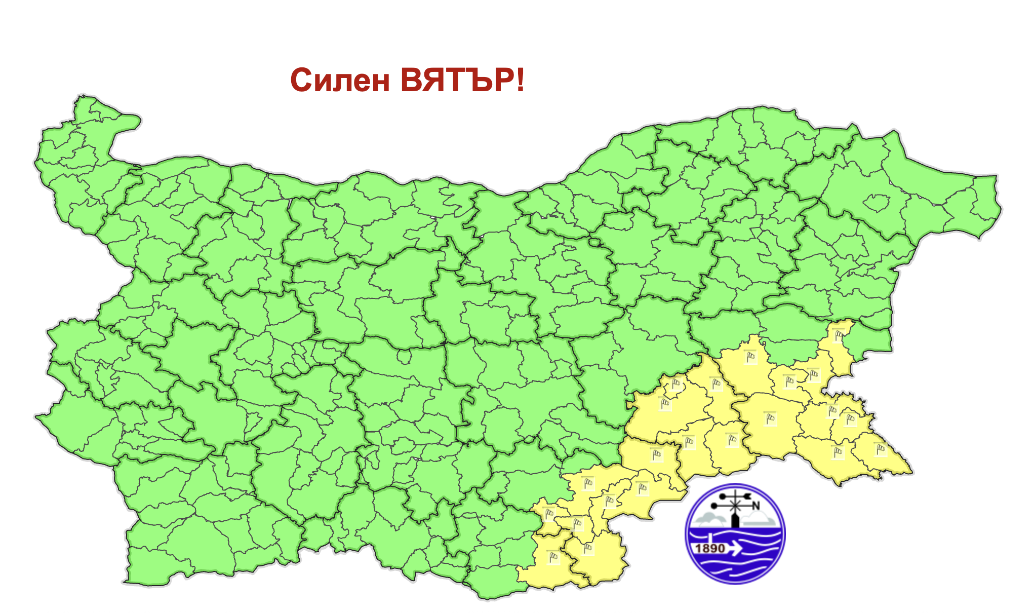 По Черноморието ще бъде слънчево с временни увеличения на облачността през втората половина на деня над южното крайбрежие. Ще продължи да духа умерен, временно силен североизточен вятър. Максималните температури ще бъдат между 27° и 29°. Температурата на морската вода е 26°-27°. Вълнението на морето ще бъде 3-4 бала.
