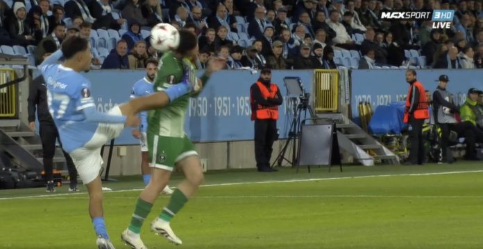 В 44-ата мин реферът Манфредас Лакянцукас пожали шведите. Футболистът на „Малмьо“ Адриан Скогмар удари с бутоните в лицето Педро Нареси. Главният съдия обаче показа на халфа само жълт картон. Ситуацията беше прегледана и от ВАР, който потвърди решението на Лукянчукас, въпреки че нарушението бе доста грубо и можеше играчът на домакините да бъде изгонен.