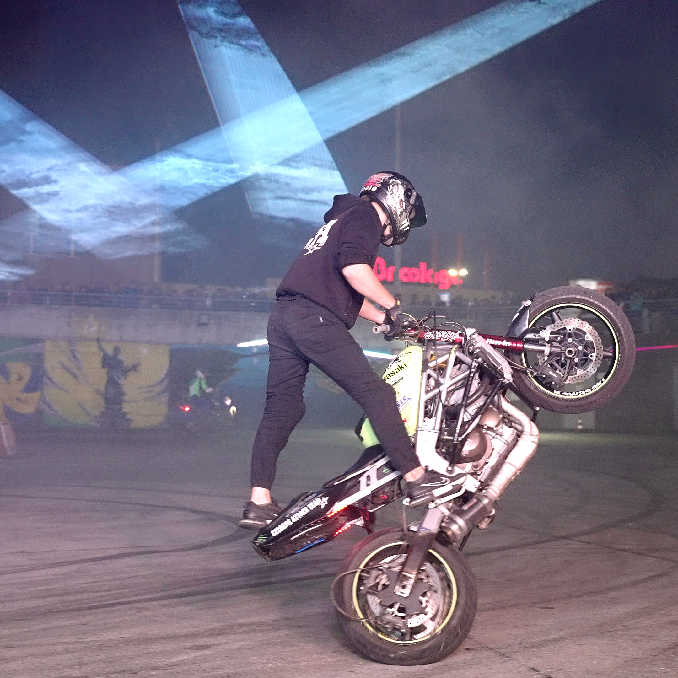 Следобед паркингът се трансформира в арена на скорост и светлина с нощния дрифт спектакъл „Maska play“. Професионални пилоти от България и Румъния демонстрираха прецизност и контрол в предизвикателния формат Gymkhana Drift – дрифт с препятствия, докато мотоциклетни стънтъри нажежиха атмосферата с акробатични номера. Визуалните ефекти, светлинното шоу на Анди Фолкнър и музиката на DJ KSG поддържаха енергията на публиката до последния оборот. Лазерите рисуваха във въздуха геометрични фигури, абстрактни образи и пулсиращи светлинни вълни, синхронизирани с музиката.