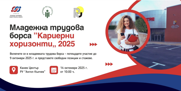 Младежка трудова борса „Кариерни хоризонти” ще се проведе на 14 октомври, вторник, от 10:00 часа в Канев център на Русенския университет „Ангел Кънчев”, съобщи Виктория Иванова от висшето училище.