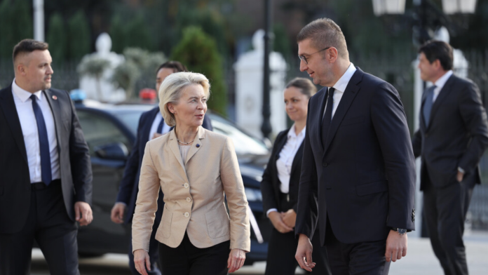 „Ние оставаме напълно зад Северна Македония по нейния път към ЕС. Можете да разчитате на нас.“, каза тя след срещата й със северномакедонския премиер Християн Мицкоски.