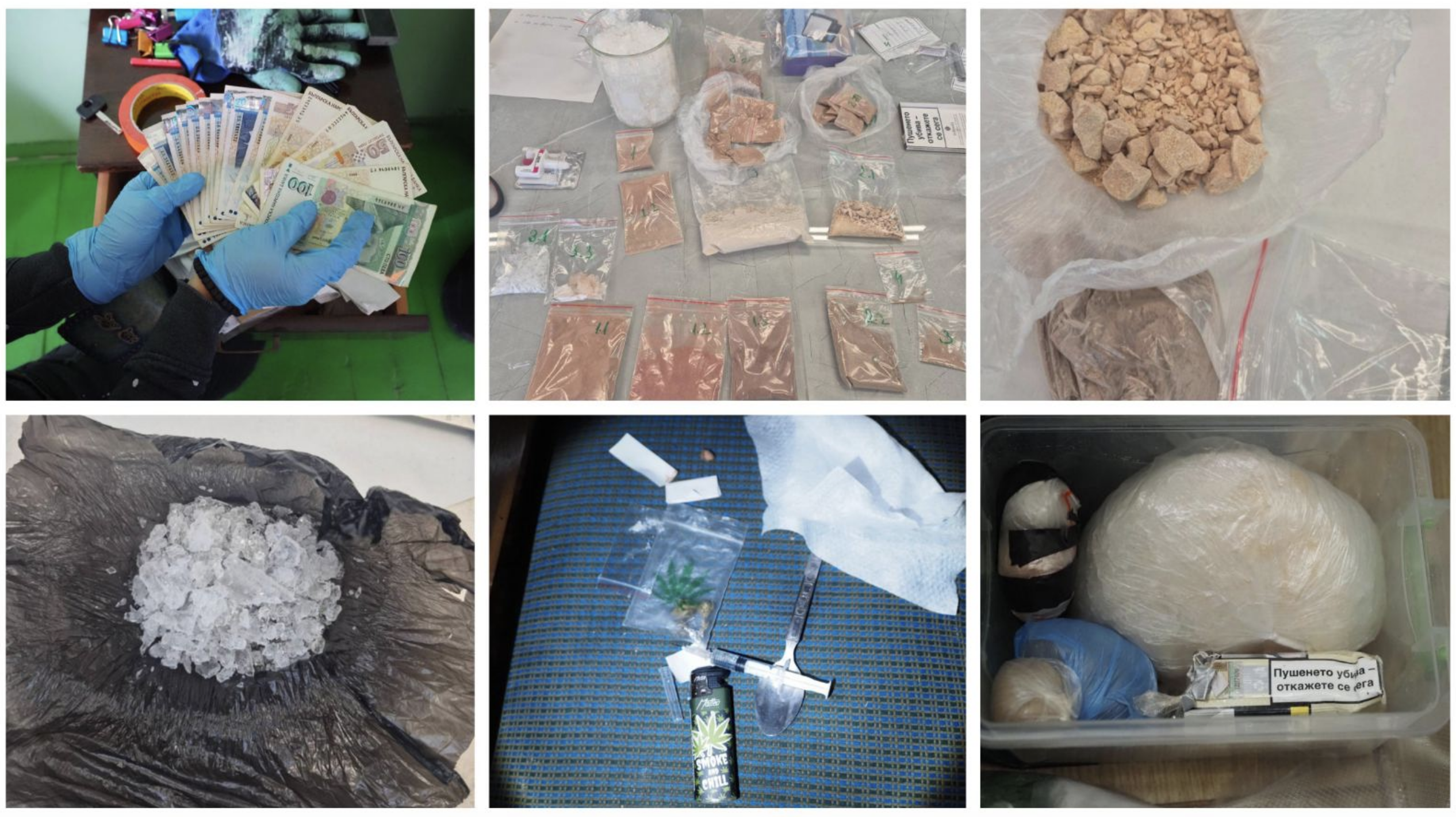 В хода на проведените процесуално-следствени действия – претърсвания на няколко адреса в Русе и София – са намерени и иззети значителни количества наркотични вещества, сред които: над 380 грама фентанил, над 400 грама метамфетамин, марихуана, прохообразни и кристалообразни вещества, и таблетки с неустановен състав. Иззети са също парични средства в размер над 15 000 лева, както и електронни везни, спринцовки с прозрачна течност и мобилни телефони, използвани за престъпната дейност.