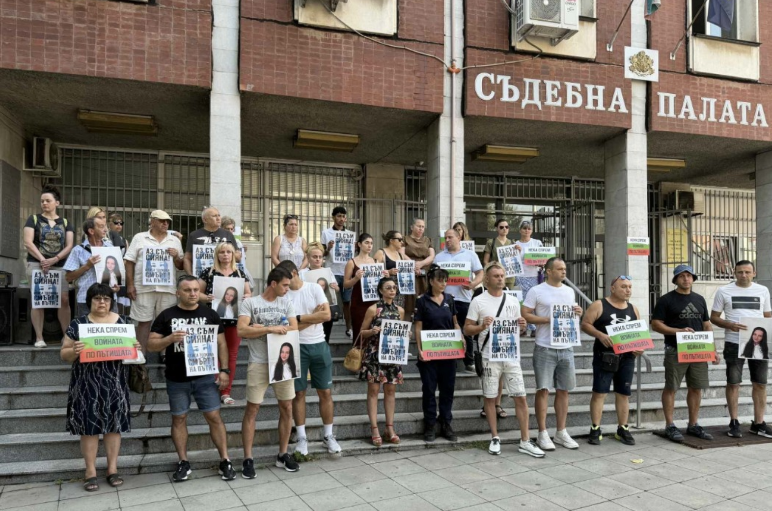 Час преди заседанието, близки на загиналата в катастрофата Сияна, родители на деца жертви на катастрофи и жители на Плевен излизат на поредния си протест пред Съдебната палата. Бащата на Сияна Николай Попов поясни защо: