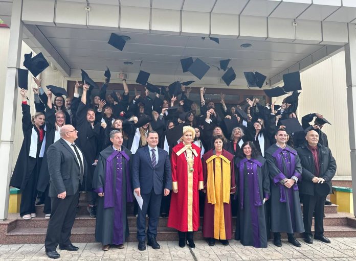 Ректорът на висшето учебно заведение пожела на завършващите студенти да мечтаят дръзко. „Ако не работите всеки ден по малко за постигане на мечтата си, някой друг ще ви наеме да реализирате неговата мечта“, каза също доц. д-р Светла Димитрова.
