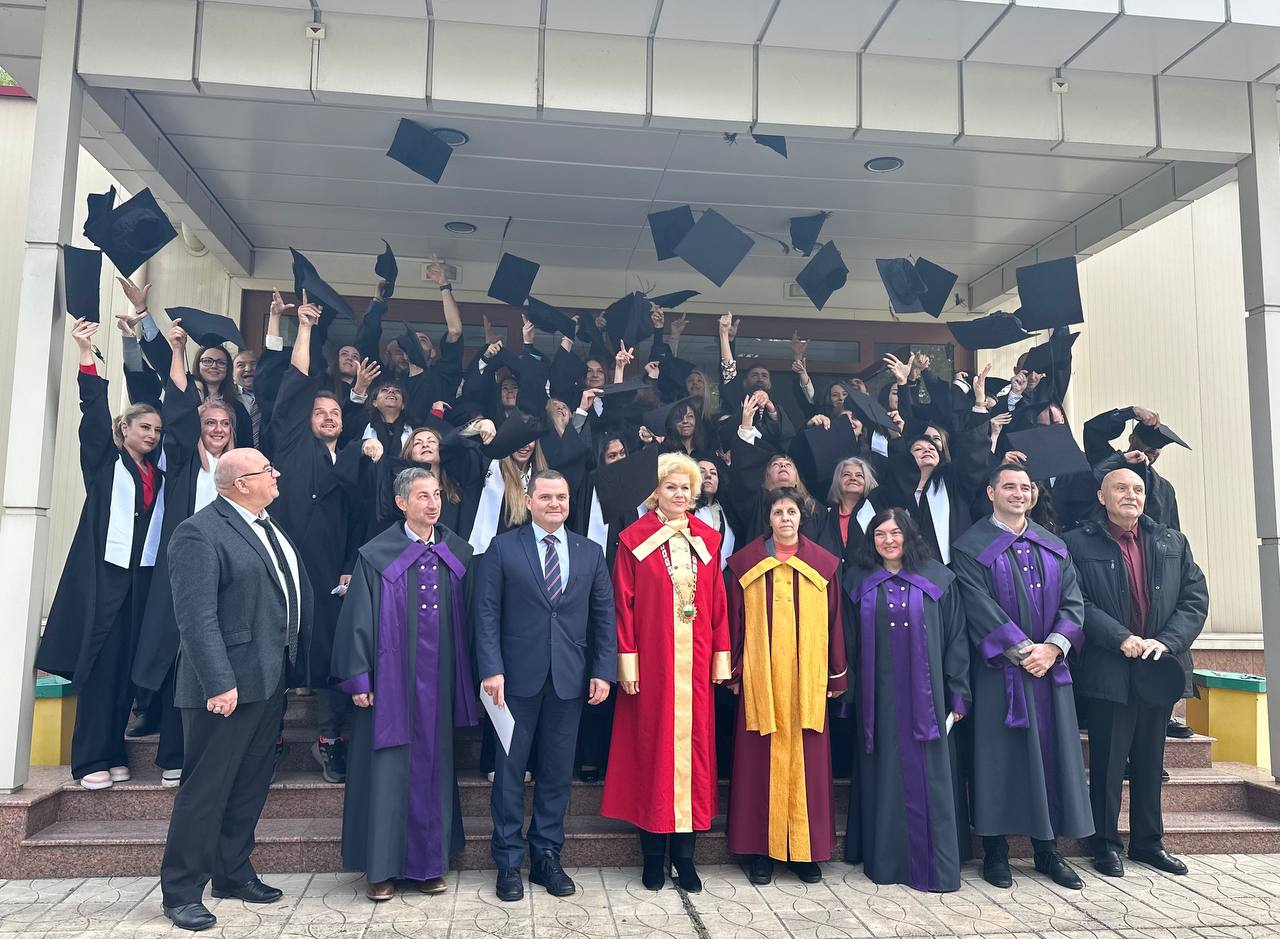 По време на тържественото събитие бяха връчени дипломите на 55 бакалаври и 32-ма магистри. С професорска титла бе удостоена и ръководителката на филиала в Русе доц. д-р Екатерина Арабска.