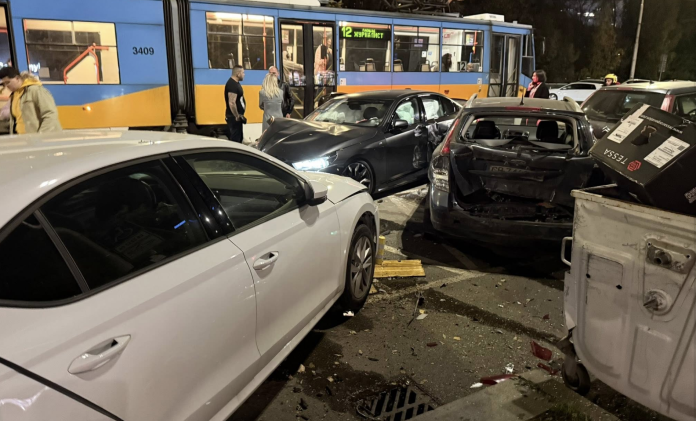 Лек автомобил „БВМ“, управляван от 42-годишен мъж, е катастрофирал тази вечер в шест паркирани автомобила на булевард „Витоша“ в София, съобщиха от Столичната дирекция на вътрешните работи (СДВР). При инцидента няма пострадали, щетите са материални, допълниха от полицията.