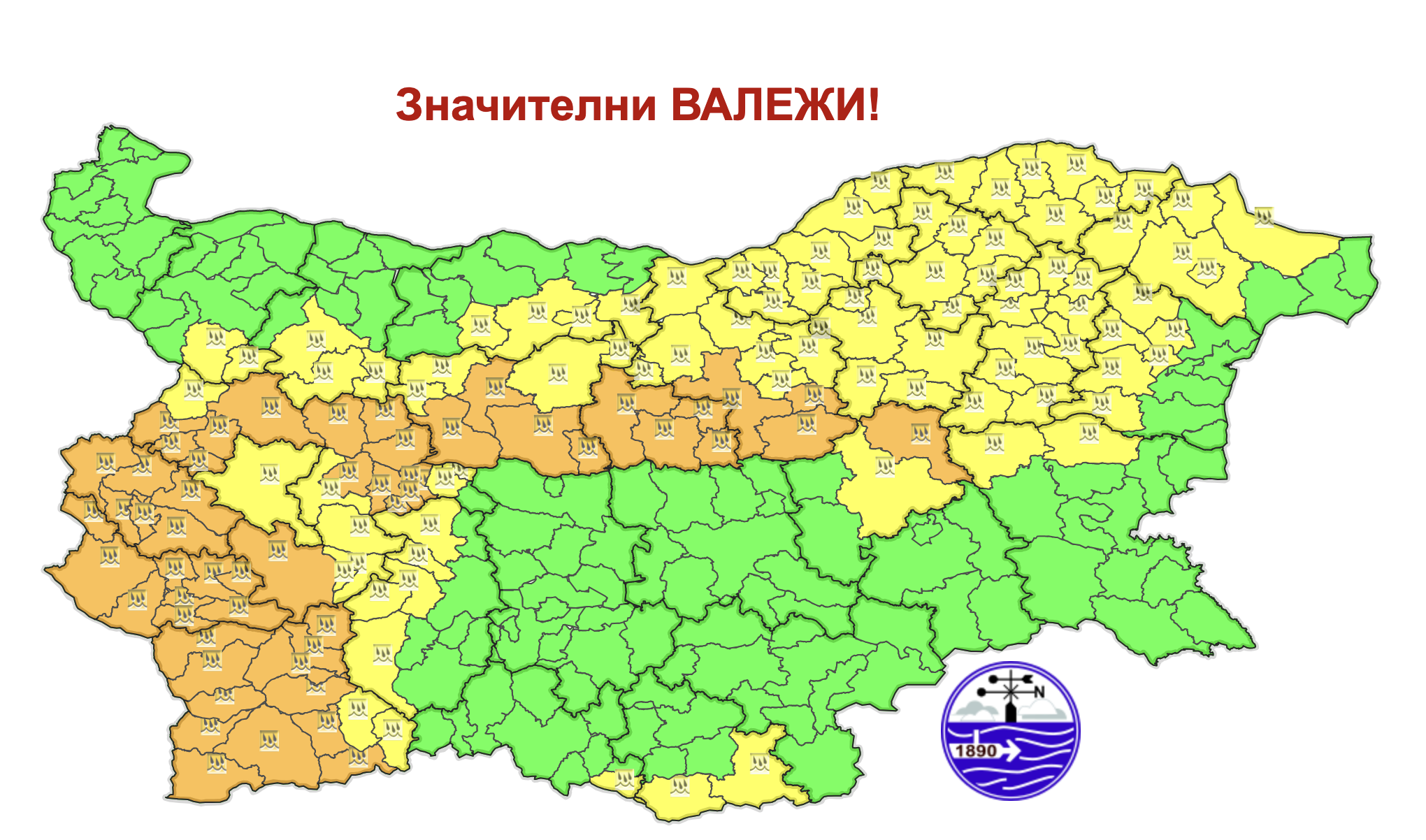 Днес времето над страната ще се задържи облачно с валежи от дъжд, значителни на места в Югозападна, Централна Северна и Североизточна България, както и в южните райони на Източните Родопи. На по-малко места и по-слаби ще са валежите в югоизточните и северозападните райони. Вятърът ще отслабне и ще се ориентира от север-североизток. В Южна България ще остане от юг-югозапад, ще е умерен, в югоизточните райони временно силен. Максималните температури ще бъдат от 7°-9° в северозападните райони до 21° в Югоизточна България, в София – около 12°.