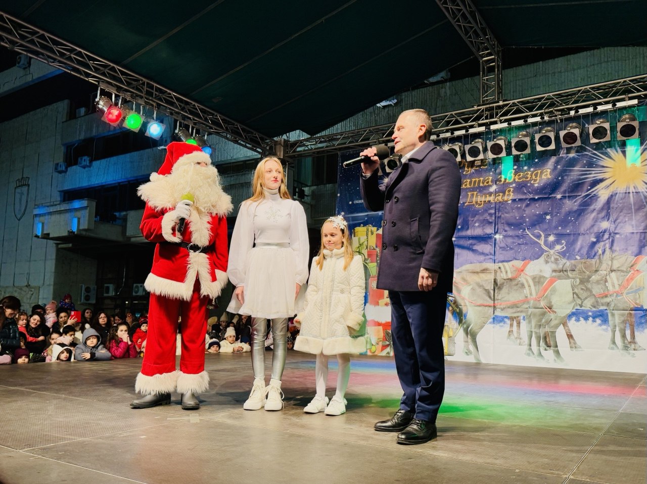 С тържествен концерт пред сградата на Община Русе тази вечер бяха запалени светлините на Коледната елха и бе поставено началото на коледно-новогодишните събития в града. Стотици жители и гости на Русе се събраха, за да посрещнат Дядо Коледа и Снежанка. Кметът Пенчо Милков даде официалния старт на тържествата.