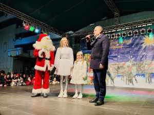 Малката Христомила Белоева от група “Слънце” изпя „Коледна приказка“, а ученици от НУИ „Проф. Веселин Стоянов“ представиха класическия танц „Валс“. Талантливата Яна Митева изпълни песента „Дядо Коледа, ела“, а Николая Владова, ученичка в III клас в ОУ ”Любен Каравелов”, отправи поетично послание към добрия старец, точно преди звънът на шейната да ознаменува появата му. Дядо Коледа пристигна и пожела на децата здраве и вяра в доброто.