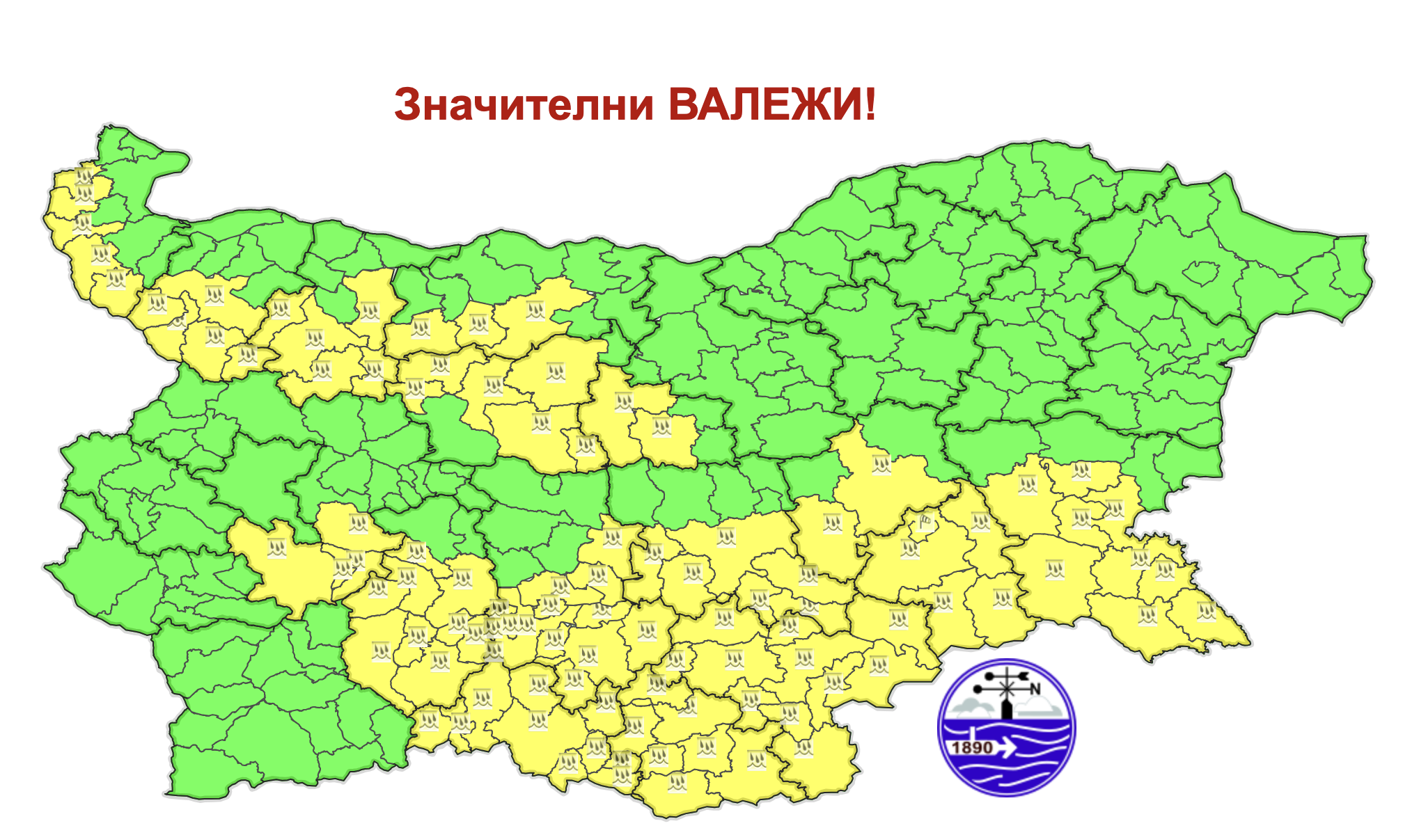 През настоящото денонощие ще остане облачно и на много места ще вали дъжд. Значителни по количество ще бъдат валежите главно в планинските райони на Западна и Централна България. Временно интензивни и с гръмотевици ще са те през деня в югоизточните части от страната. Ще духа умерен, в източните райони и временно силен североизточен вятър. Минималните температури ще бъдат между 5° и 10°, за София – около 6°, максималните – между 7° и 12°, за София – около 7°.
