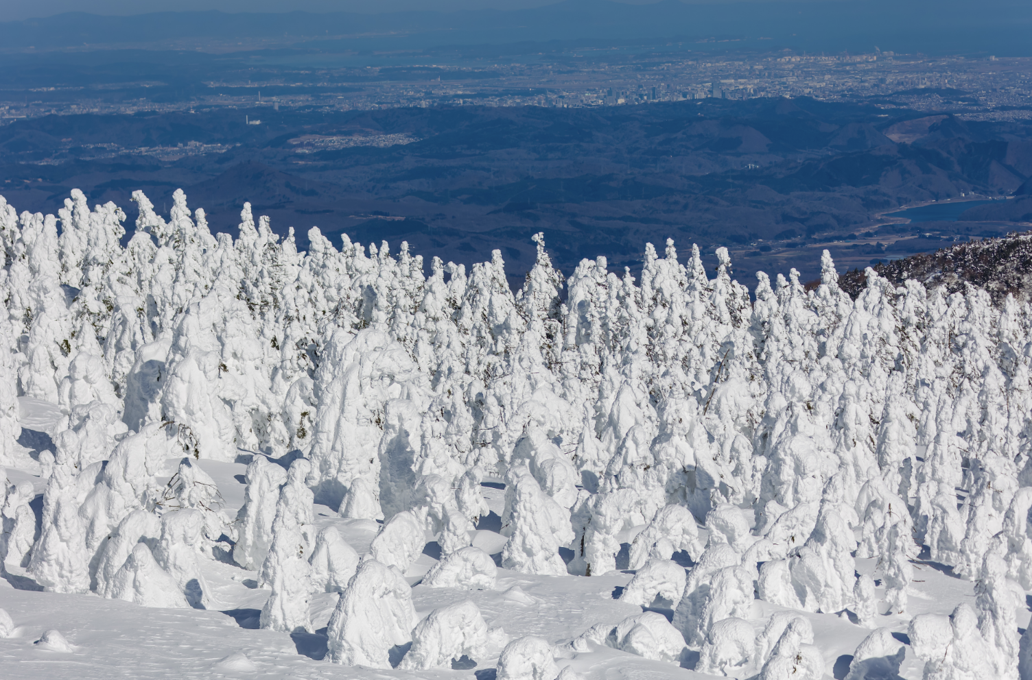 Всяка зима горните склонове на планината Зао в Северна Япония – един от най-известните ски курорти в страната – се преобразяват. Елите, покрити с гъста слана и сняг, се превръщат в призрачни фигури, известни като „джухьо“ или „снежни чудовища“.