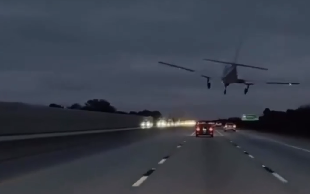Видеозапис, публикуван в интернет, показва как самолетът се опитва да кацне на магистралата, докато колата се движи.