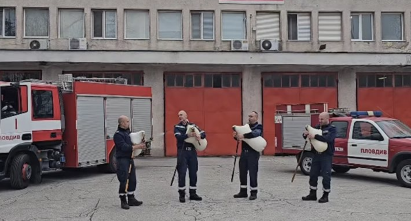 Пожарникарите Васил Балабанов, Атанас Шопов, Васил Маринов и Иван Попов от пловдивската пожарна, които влизат без страх в пламъците направиха специален видеопоздрав за всички, които дежурят по празниците – изпълнение с каба гайда.