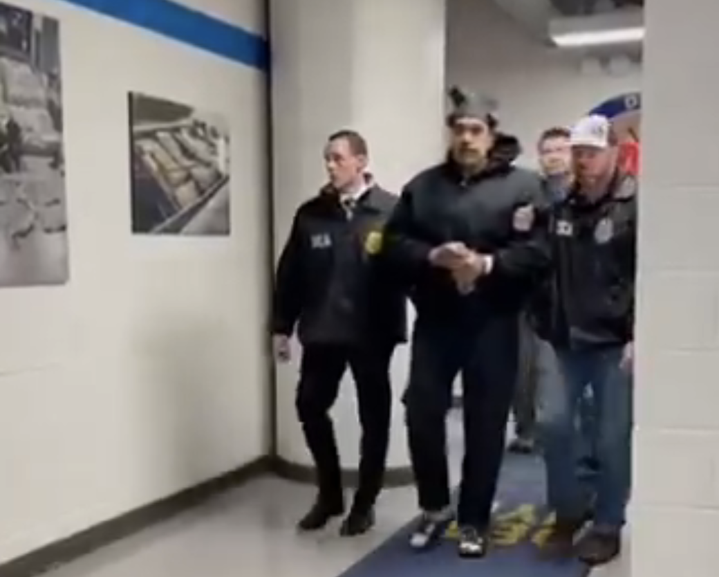 Белият дом разпространи видеозапис в социалната мрежа „Екс“ (X), на който се вижда как Мадуро, окован с белезници и ескортиран от служители на Агенцията за борба с наркотиците (Drug Enforcement Administration – DEA), преминава по коридор в сграда на федералните власти.