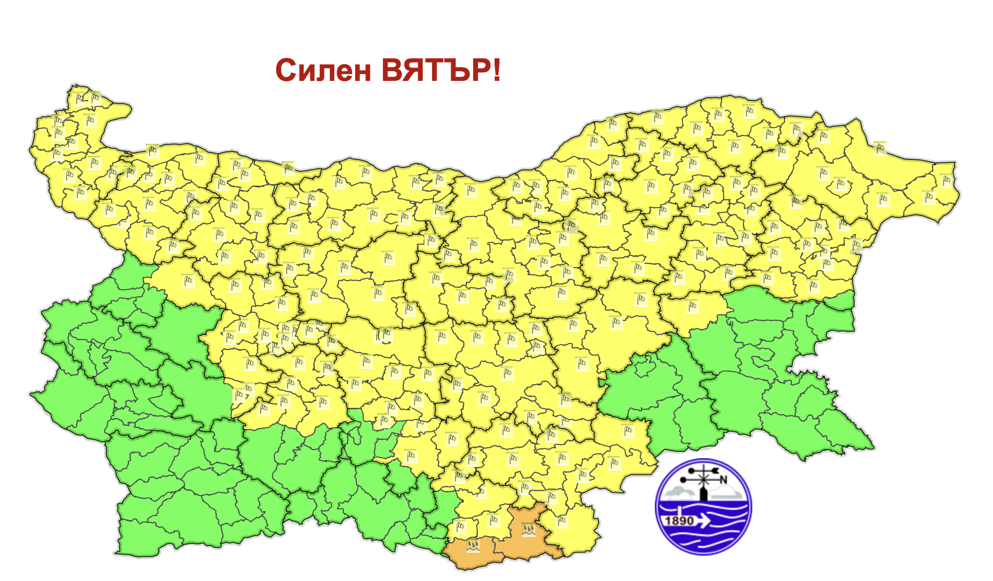Днес ще бъде облачно, валежите ще продължат, като на места ще са значителни по количество и придружени с гръмотевици. Вятърът в цялата страна ще се ориентира от северозапад, ще се усили и с него ще нахлува студен въздух. В Горнотракийската низина и Дунавската равнина ще е силен и бурен.