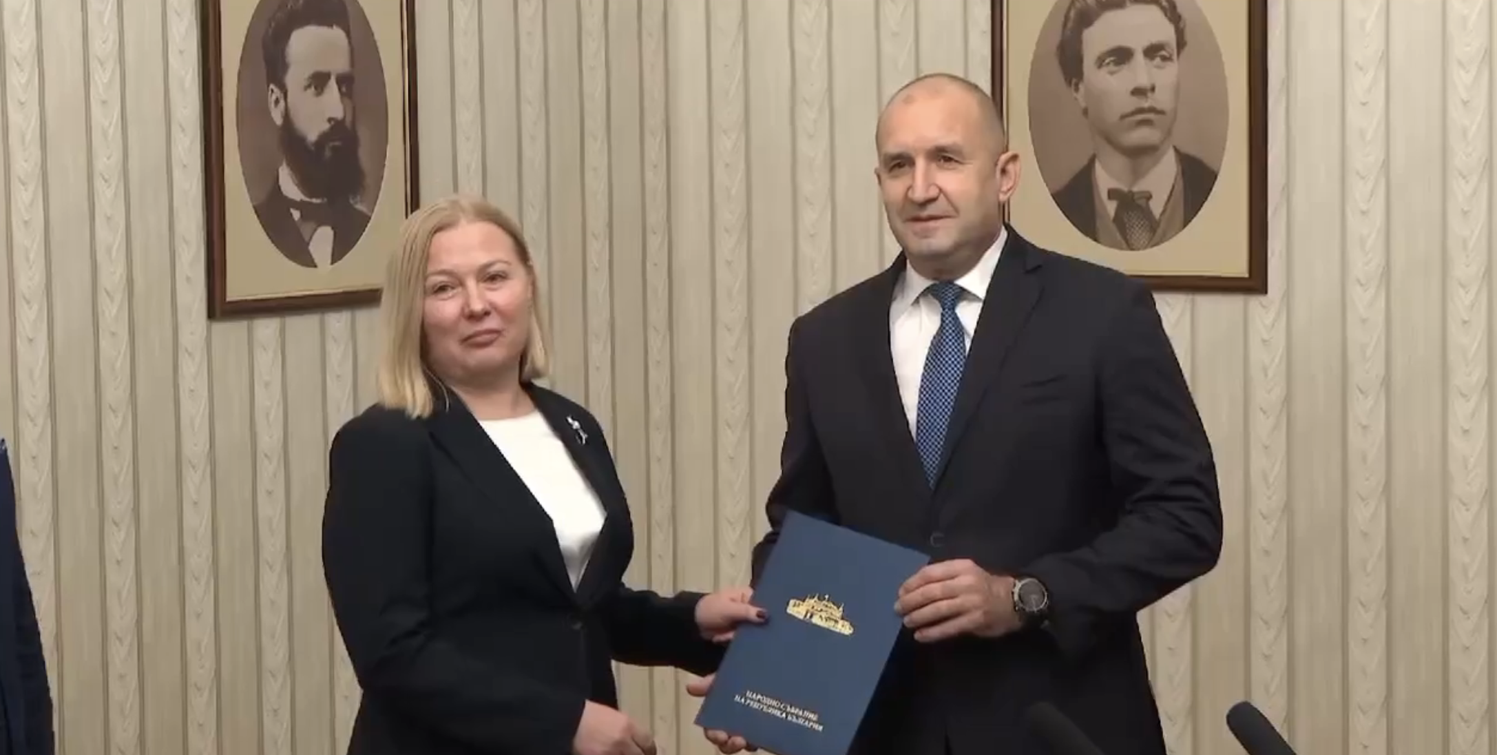 Връчването на втория проучвателен мандат започна с лек, но показателен гаф. Още в началото президентът Румен Радев предизвика изненада, като се обърна към делегацията с думите: „Заповядайте да обявите вашия кандидат за служебен министър-председател“, без да стане ясно дали става дума за шега или за моментно объркване.