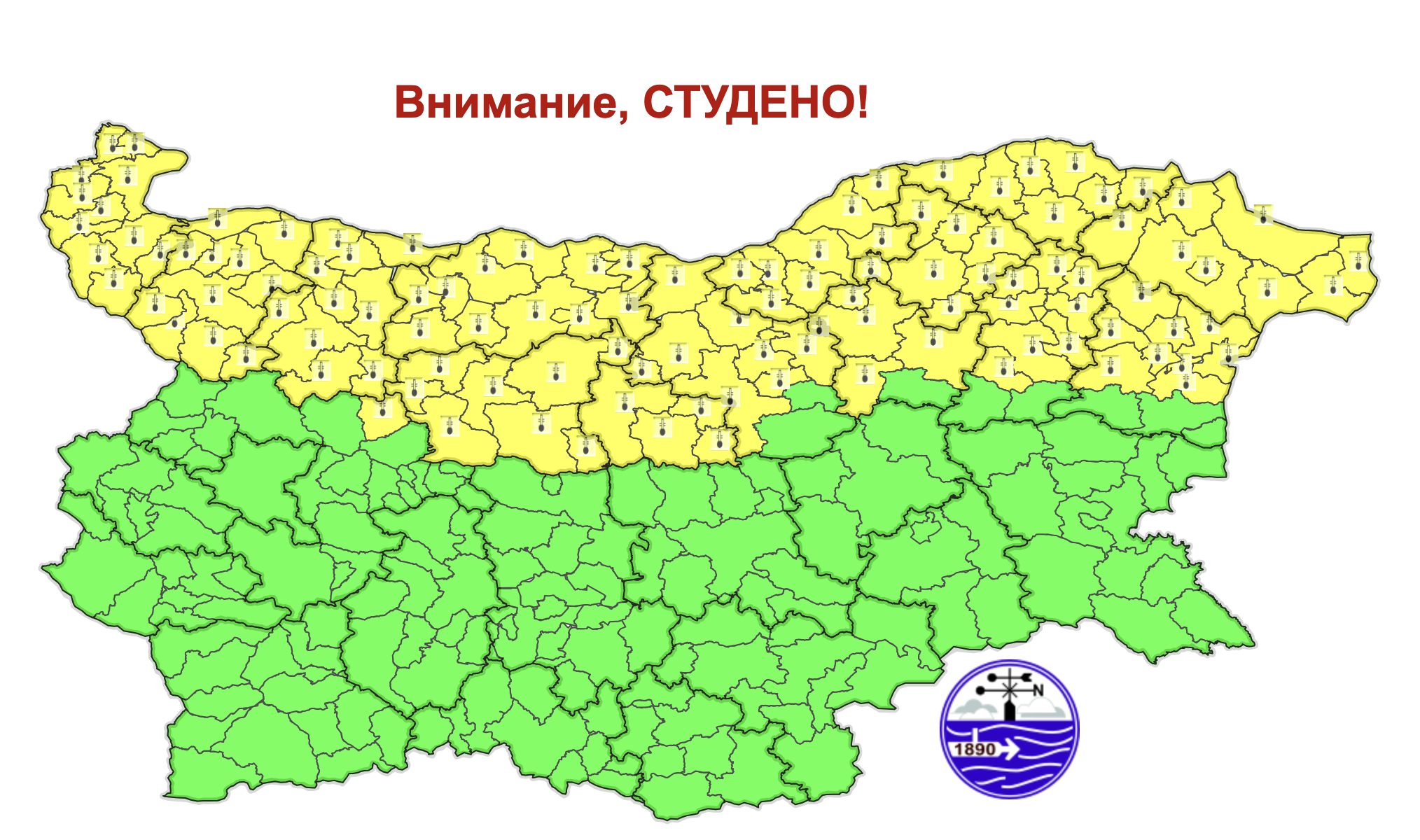 Днес над страната ще е предимно слънчево, но утрото ще е мразовито. По-значителна облачност ще има преди обяд над Югозападна България, но след обяд и там ще намалее до предимно слънчево време. Ще духа умерен североизточен, в Източна България – силен северен вятър и с него ще продължи да нахлува студен въздух. Максималните температури ще са от минус 3° в Лудогорието и по източното поречие на Дунав, до около 4° в крайните югозападни райони от страната, в София – около 3°.