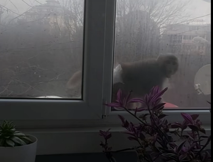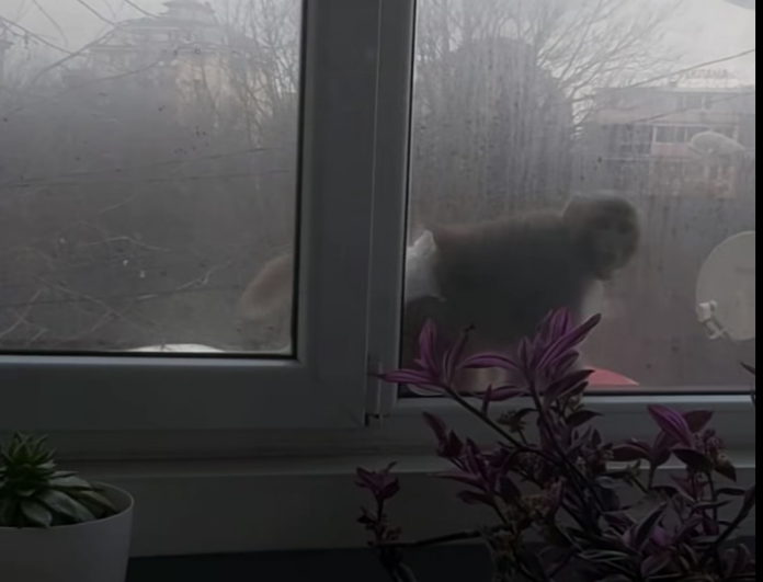 На кадрите се вижда как животното преминава през прозореца на жена , а след това се хваща за кабели. Любопитната случка е от „Люлин 8″.