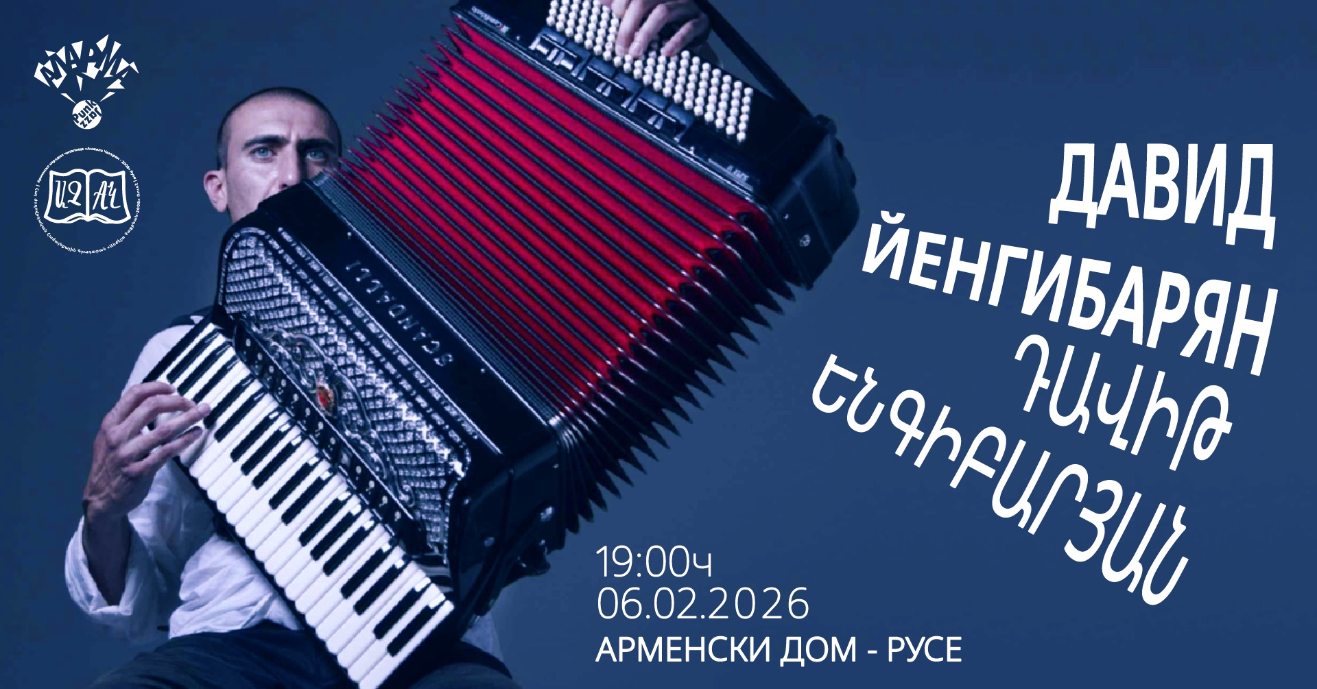 На 6 февруари /петък/ от 19 ч. за първи път пред русенска публика ще се представи Давид Йенгибарян (Դավիթ Ենգิբարյան) – един от най-удивителните съвременни акордеонисти в света.