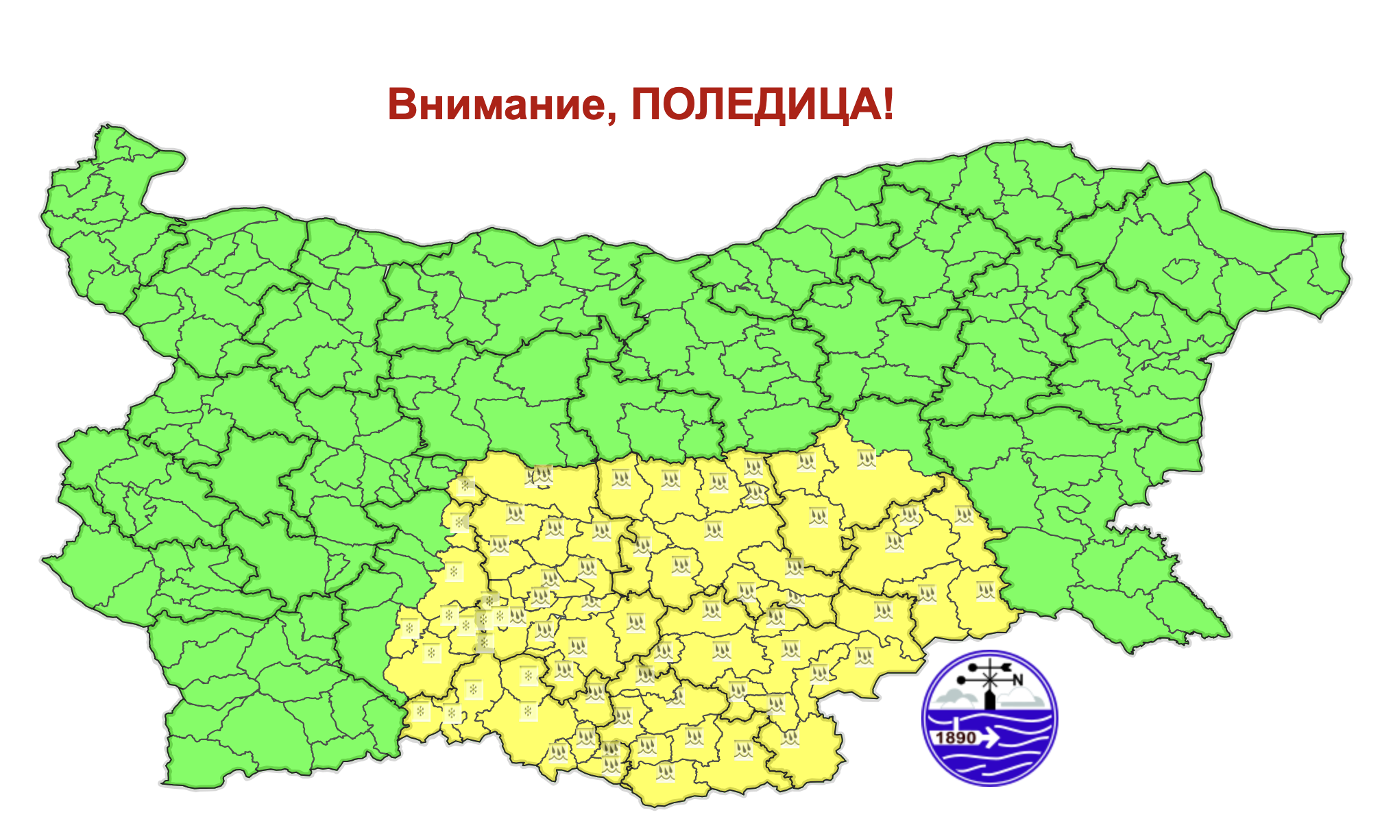 Днес ще е облачно. Около обяд от югозапад ще започнат валежи от сняг, които до вечерта ще обхванат по-голямата част от Южна България и Централен Предбалкан. Значителни ще бъдат валежите в Рило-Родопската област. Ще духа слаб до умерен вятър от изток-югоизток и температурите в източната половина от страната ще се повишат, при което снегът в източната част от Горнотракийската низина и Източните Родопи, а през нощта срещу четвъртък и в централната част от Дунавската равнина, ще премине в дъжд и там ще се образува поледица. Максималните температури ще са между 0° и 5°, в София – около 0°.