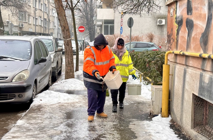 В условията на зимна обстановка в Русе продължава почистването и третирането срещу заледяване на улици, тротоари и пътни участъци в града и общината.