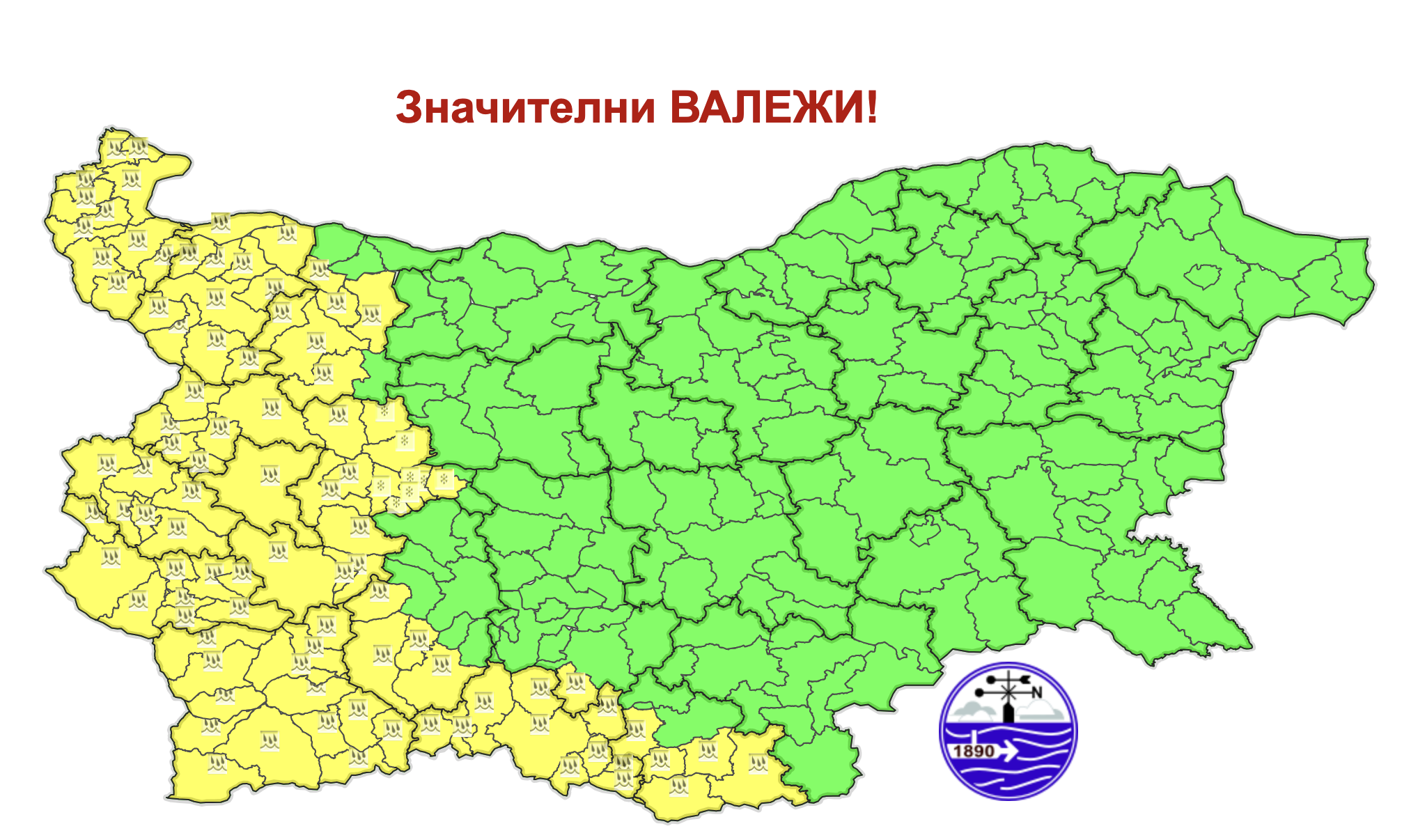 Днес преди обяд в западните, а след обяд и в източните райони от страната вятърът ще е от запад-северозапад, умерен до силен и с него ще нахлува студен въздух. С понижението на температурите на много места Югозападна България и Предбалкана дъждът ще премине в сняг и ще се образува нова снежна покривка. В Горнотракийската низина и Източна България валежите ще са от дъжд. Вечерта от запад валежите ще отслабват, на места временно и ще спират. Максималните температури ще са предимно между 3° и 8°, малко по-високи в Югоизточна България, в София – около 4°.