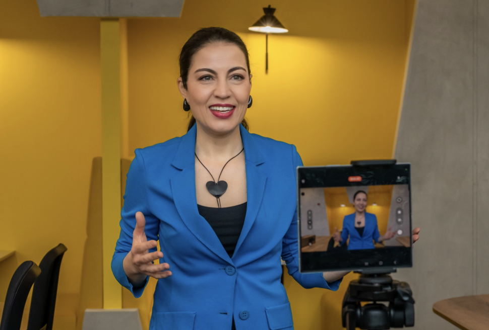 Не изпадайте в ужас. Не е толкова страшно. Просто заставаш пред смартфона си и натискаш „запис“. След това разполагаш с безценна информация. Кое ти се получава добре? Кое може да се получи по-добре? Аз самата съм си улавяла грешки, за които не подозирам, гледайки собствените си записи. Често се оказва, че това са лесни за поправяне неща. Просто трябва да ги видиш“, съветва чаровната журналистка във Фейсбук.