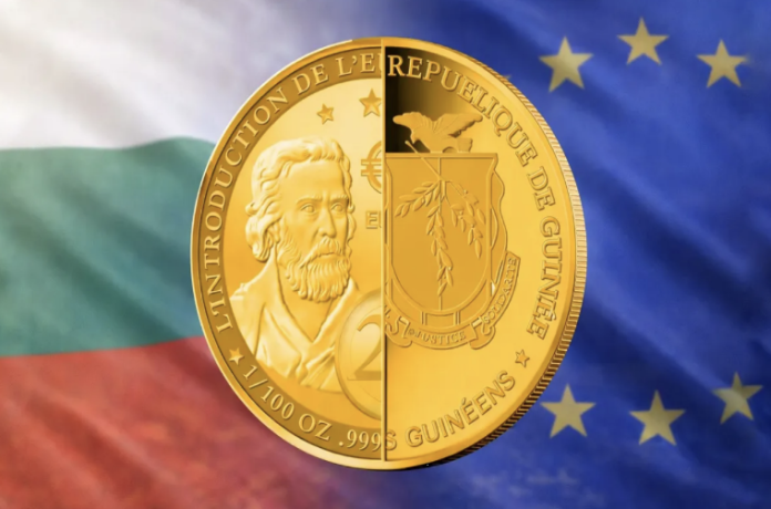 Богатата на боксит, злато и диаманти африканска държава Гвинея не прави изключение. Тя отсече златна монета от 1000 франка в чест на българското евро.