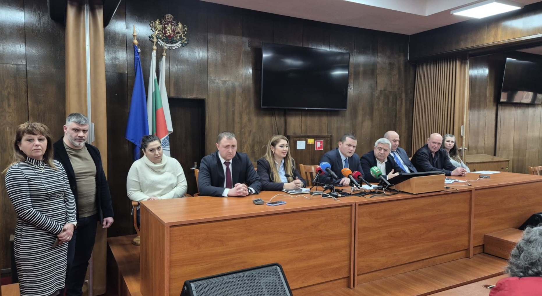 На брифинг в сградата на местната администрация кметът, председателят на Общинския съвет акад. Христо Белоев, заместник-кметовете Никола Лазаров, Златомира Стефанова, Енчо Енчев, Здравка Великова и Борислав Рачев, както и директори на дирекции в Община Русе представиха мотивите за предложението на Община Русе, одобрено от Общинския съвет, за придобиване на собственост върху буферния паркинг.