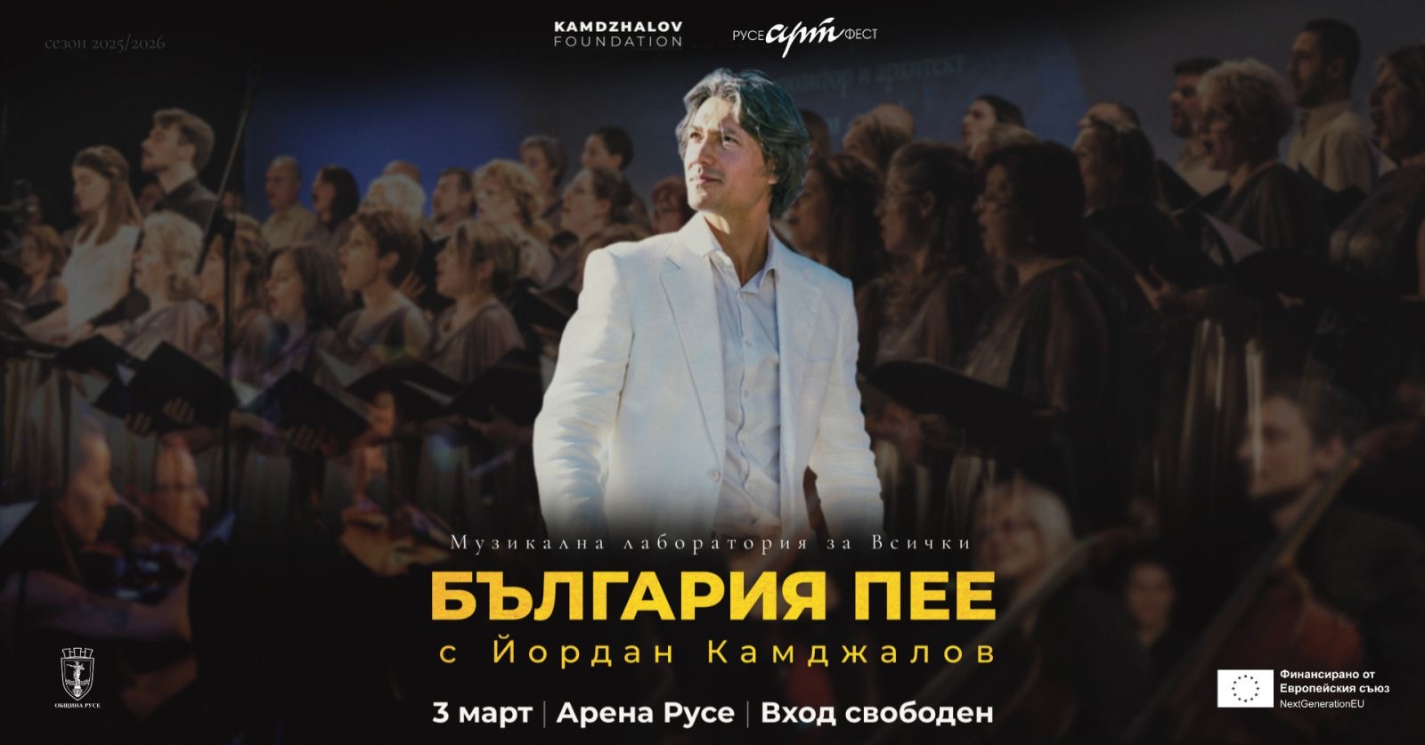 На националния празник на България, Русе ще бъде домакин на единствената по рода си интерактивна концептуална вокална платформа „България пее“ с Йордан Камджалов.