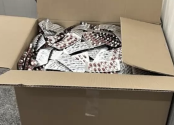 Иззето е и прахообразно вещество, както и различни заготовки и други доказателства. На този етап от разследването е изяснено, че става дума за медикамент, предназначен за неврологично заболяване. Опаковките и лекарствата са били обозначени с търговската марка на световно известна фармацевтична корпорация, без да има необходимите разрешителни документи от правопритежателя.