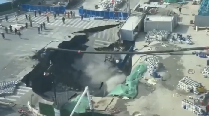 Гигантска дупка се отвори близо до строителна площадка на метро в Шанхай. Срутването с ширина 10-20 метра погълна част от пътя за секунди – моментът беше заснет на камера. Предварителните доклади сочат, че теч на вода, засечен предния ден, може да е причинил инцидента. Строителните работници са успели да избягат. Автомобилите също са успели да се отклонят и няма съобщения за пострадали.