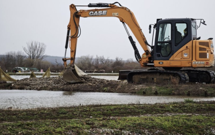 В опит да се овладее водната стихия, по спешност е мобилизирана тежка техника от съседния бетонов възел. В момента машините работят по укрепване на насипите, за да се ограничи разливът, който вече е залял голяма част от дворовете в индустриалния район.