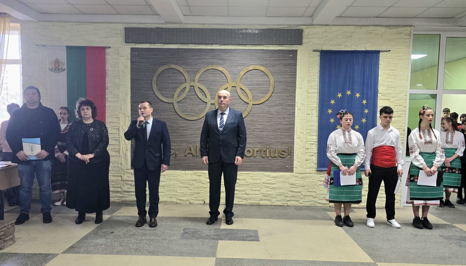 В своето приветствие кметът поздрави учениците и педагогическия колектив, като припомни, че днес за тях е двоен празник – патронният празник на Спортното училище и 148 години от Освобождението на Русе. „Това е ден на чест, памет и гордост. Героите са пример за нас да отстояваме убежденията си, да се борим докрай и никога да не предаваме мечтите си. Скъпи ученици, победите започват с труд и постоянство, а всяка тренировка е малък урок по воля. Пожелавам Ви да станете повод нашият химн да звучи по целия свят“, заяви Милков. Той благодари на треньорите и преподавателите за търпението и усилията да изграждат характери, учейки децата как да губят с достойнство и как да побеждават с чест.