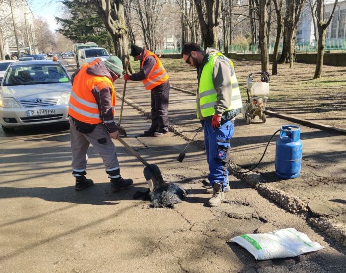 До обяд днес бяха запълнени със студена асфалтова смес нарушени участъци по улиците „Изгрев“ и „Студентска“ (в района на СУ „Възраждане“), както и по бул. „Цар Освободител“. Следобед дейностите продължават по бул. „Съединение“ и улиците „Олимпи Панов“ и „Иван Ведър“.
