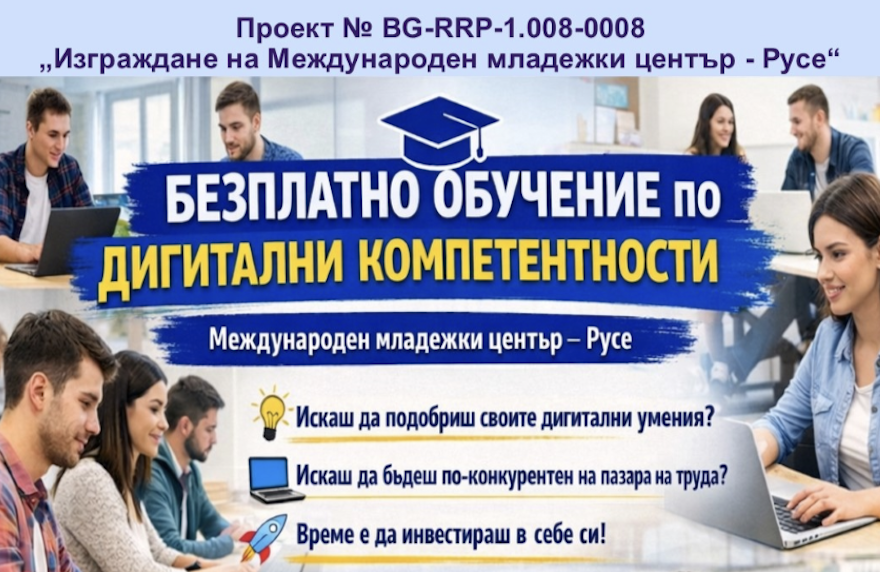 Международният младежки център стартира нова възможност за развитие на младите хора в града, като организира безплатен курс по дигитална компетентност за младежи на възраст между 15 и 29 години. Обучението има за цел да подкрепи личностното и професионалното развитие на младежите в региона чрез развиване на съвременни знания и умения.