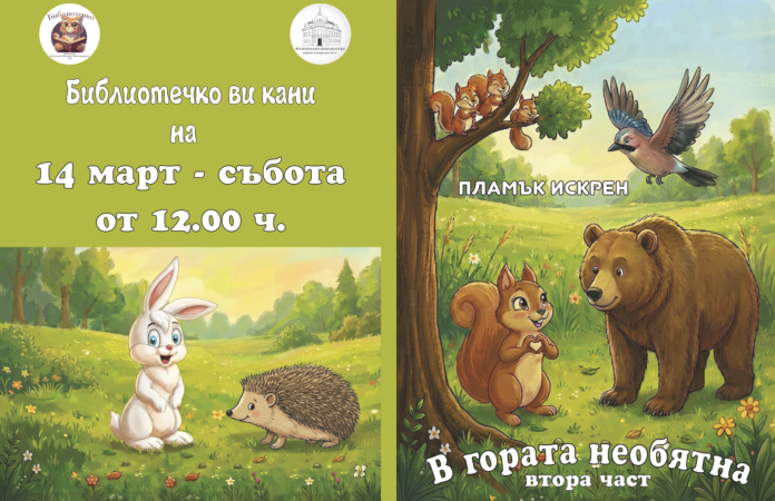 На 14 март – събота, от 12.00 ч. в детски отдел на Регионална библиотека „Любен Каравелов“ – Русе ще се състои премиерата на новата книга на русенския писател и поет Пламък Искрен „В гората необятна. Втора част“.