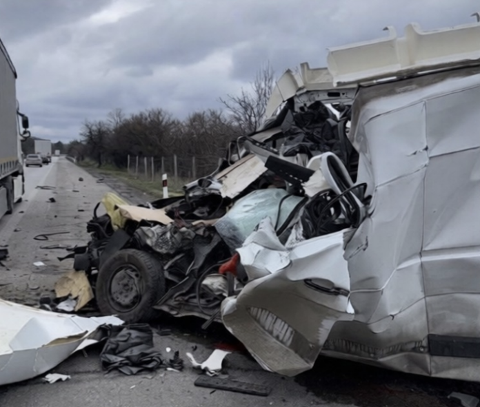 Според първоначална информация бусът се е забил в преминаващ тир.