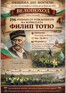 За четвърта поредна година община Две могили стана домакин на традиционния велопоход под надслов „Ще издържим…“. Събитието бе организирано в чест на 196-ата годишнина от рождението на легендарния български войвода и национален герой Филип Тотю.