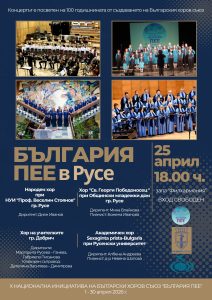 Хоров концерт, посветен на 100-годишнината от създаването на Българския хоров концерт, ще се състои на 25 април от 18 часа в зала „Филхармония“. Събитието, което се организира от Община Русе и Общинския младежки дом, е част от Националната инициатива „България пее“ 2026.