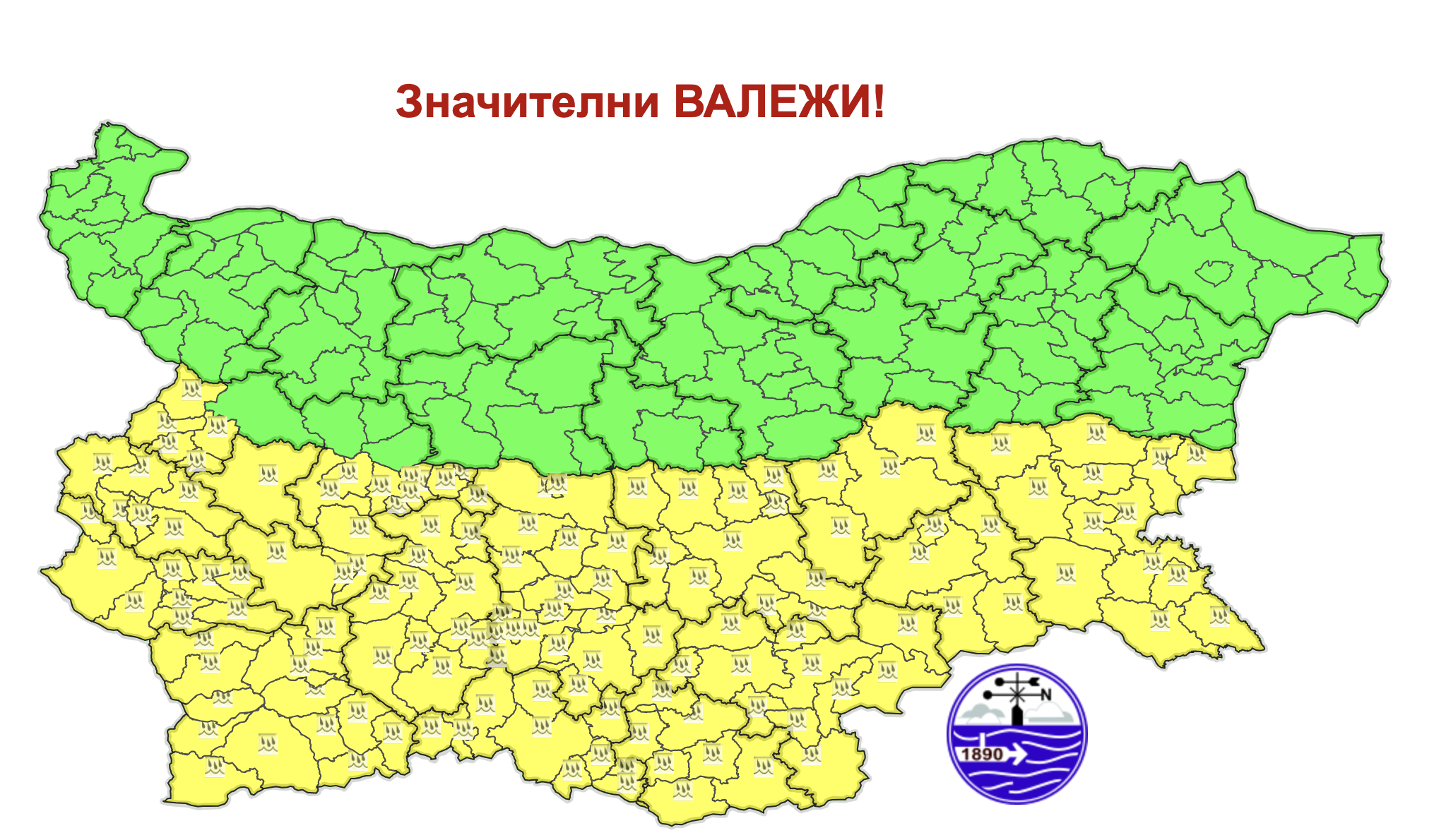 Днес още преди обяд, започналото от северозапад увеличение на облачността ще обхване цялата страна. Ще има валежи, интензивни и значителни на много места в Южна България, където ще са придружени и с гръмотевици. Вятърът ще се ориентира от северозапад, в Източна България от север-североизток, ще бъде слаб и умерен и с него ще прониква студен въздух. Максималните температури ще бъдат между 13° и 18°, в София – около 13°.