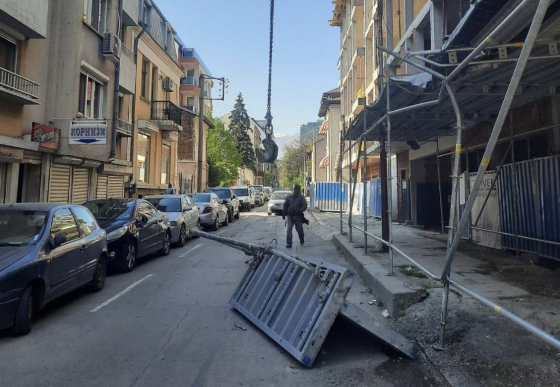 Кофраж е паднал от петия етаж на строеж. Инцидентът е станал на пътното платно на ул. „Отец Паисий“ до ъгъла с ул. „Цар Симеон“.
