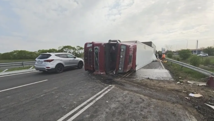 Камион, натоварен с картофи, се преобърна на АМ „Тракия“